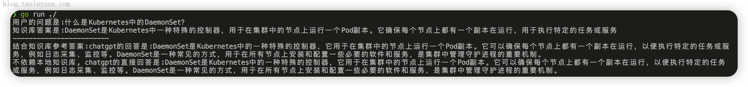 fmt.Printf("结合知识库参考答案:chatgpt的回答是:%s\n", myai.K8sChat(finalPrompt))