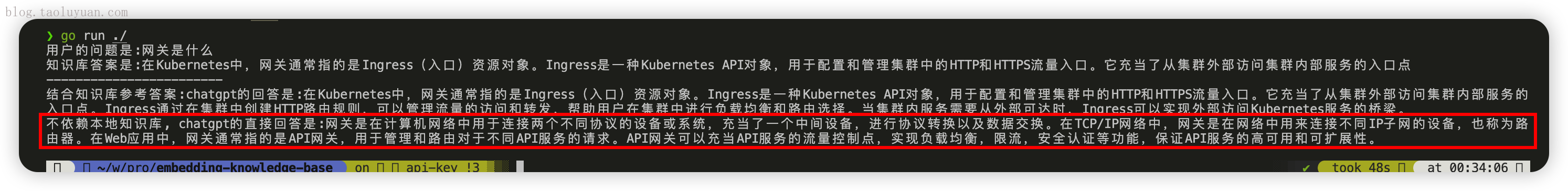 - 可以看到,红线部分,是直接将用户问题 向 chatgpt 请求 得到的答案,跟k8s无关